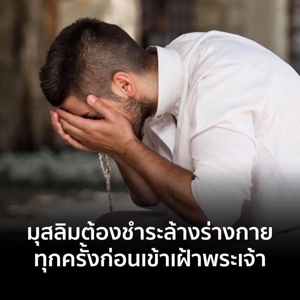 ความว่า : โอ้บรรดาผู้ศรัทธาแล้วทั้งหลาย เมื่อท่านทั้งหลาย จะไปทำการละหมาด พวกท่านจงล้างใบหน้าของพวกท่านและมือของพวกท่านจนถึงข้อศอก และท่านทั้งหลาย จงลูบศีรษะ ของพวกท่านและจงล้างเท้าทั้งสองจนถึงตาตุ่ม.